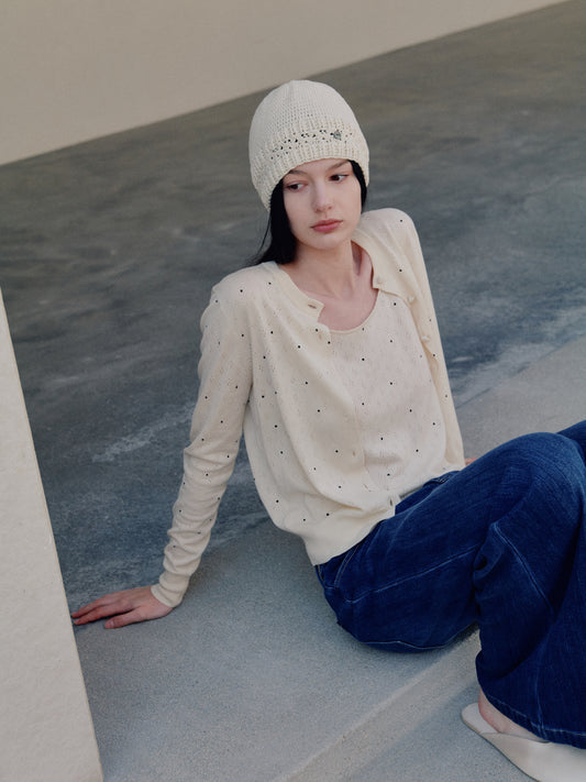 COSYCOZY Tencel Cotton Linen Polka Dot Cardigan