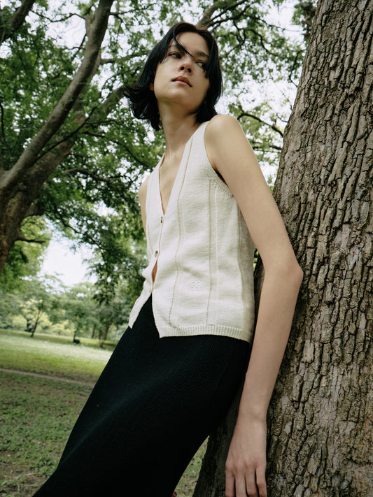 COSYCOZY Cotton Knitted Waistcoat with Vertical Stripes Details