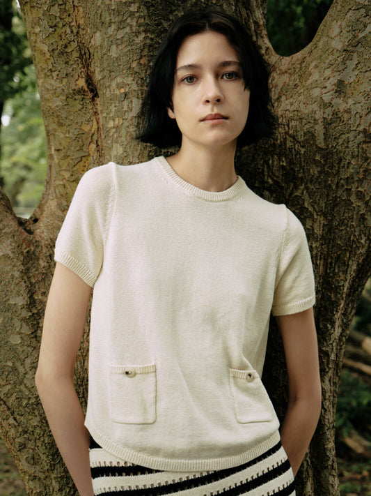 COSYCOZY Cotton Knitted T-shirt with Back Details