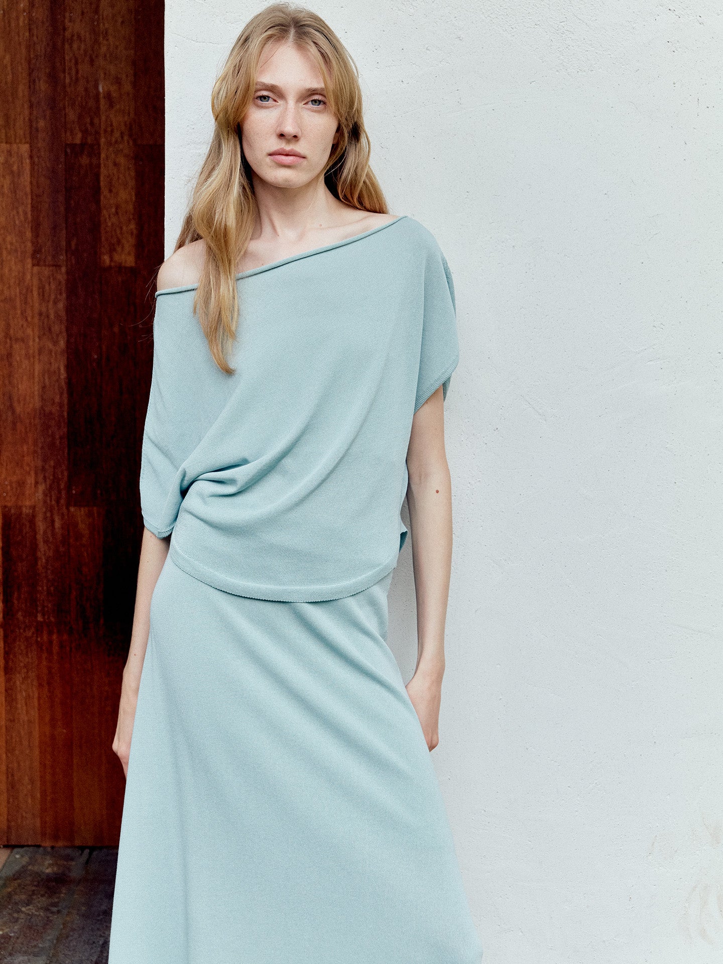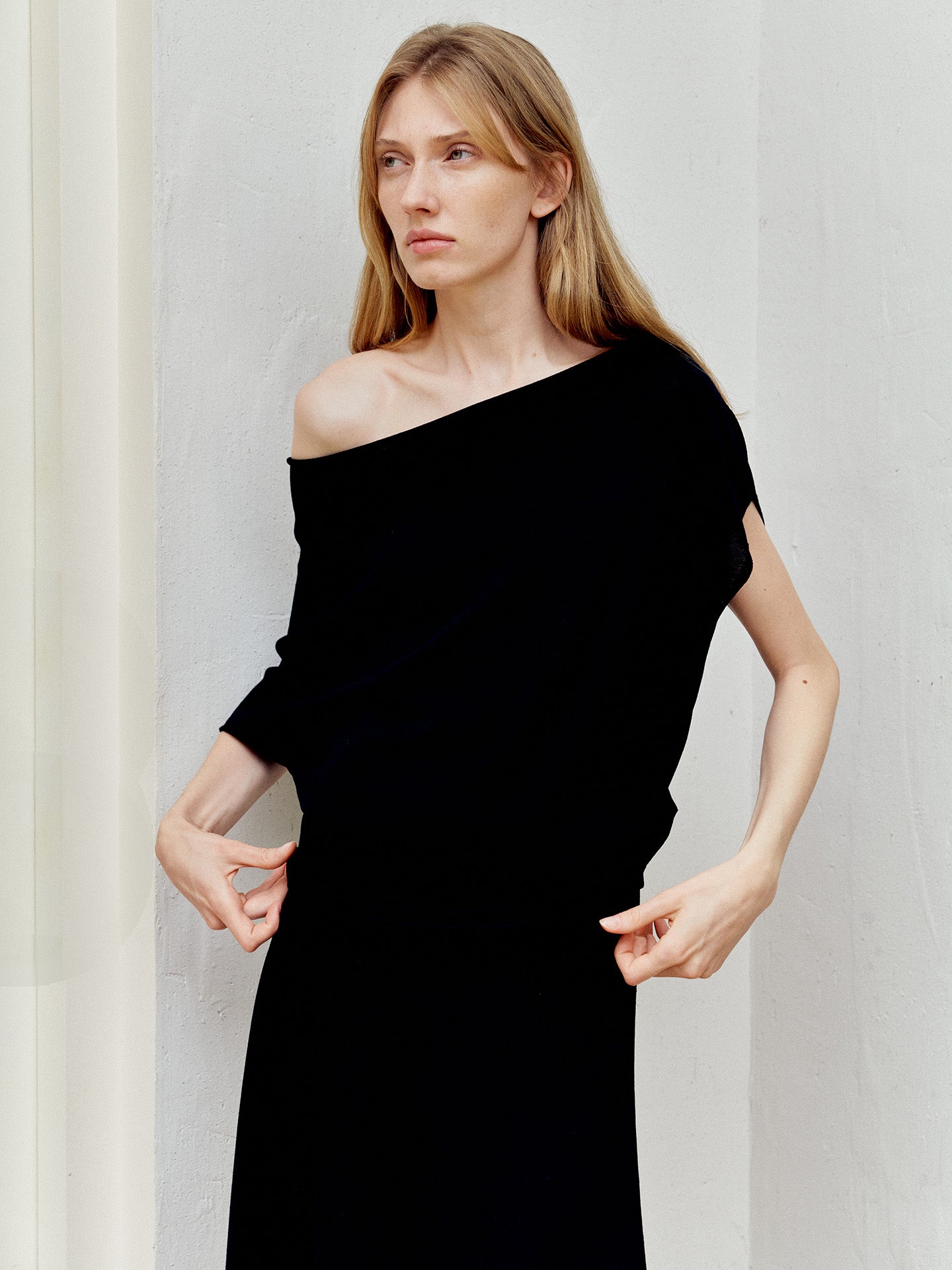 COSYCOZY Acetate Cotton Asymmetric Shoulder Top