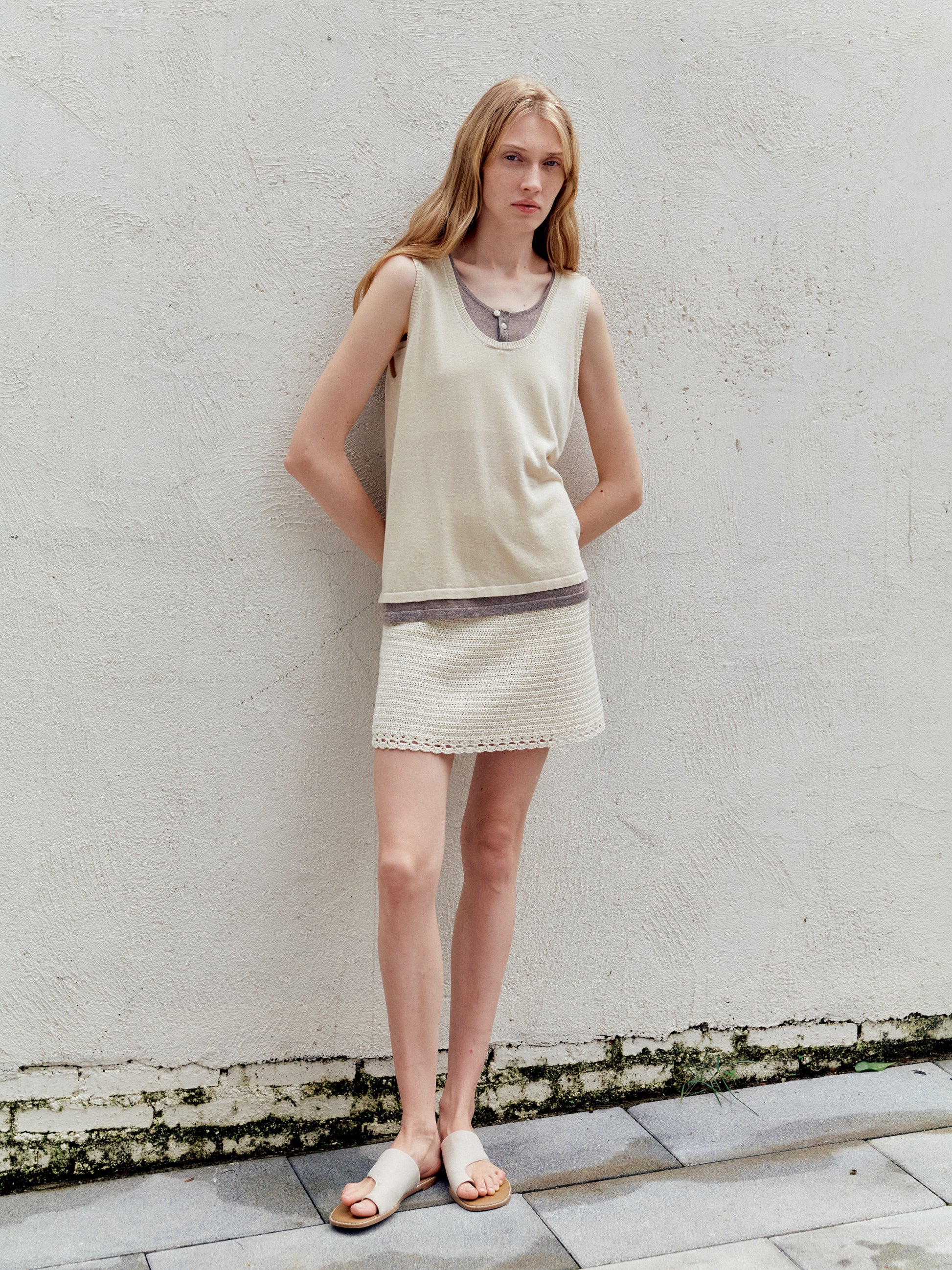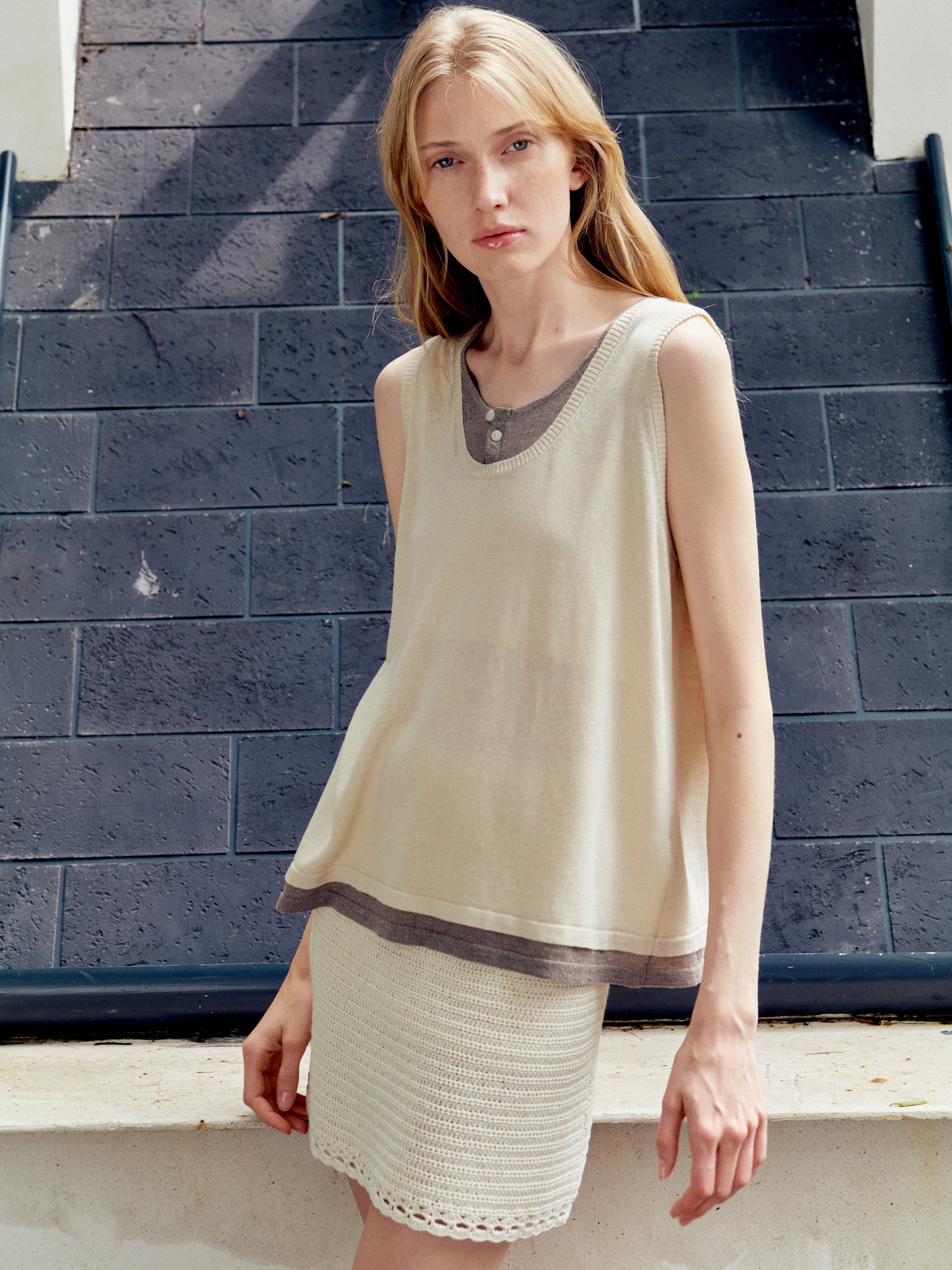 Mock-layer colour-block in beige-coffee whispers quiet warmth.