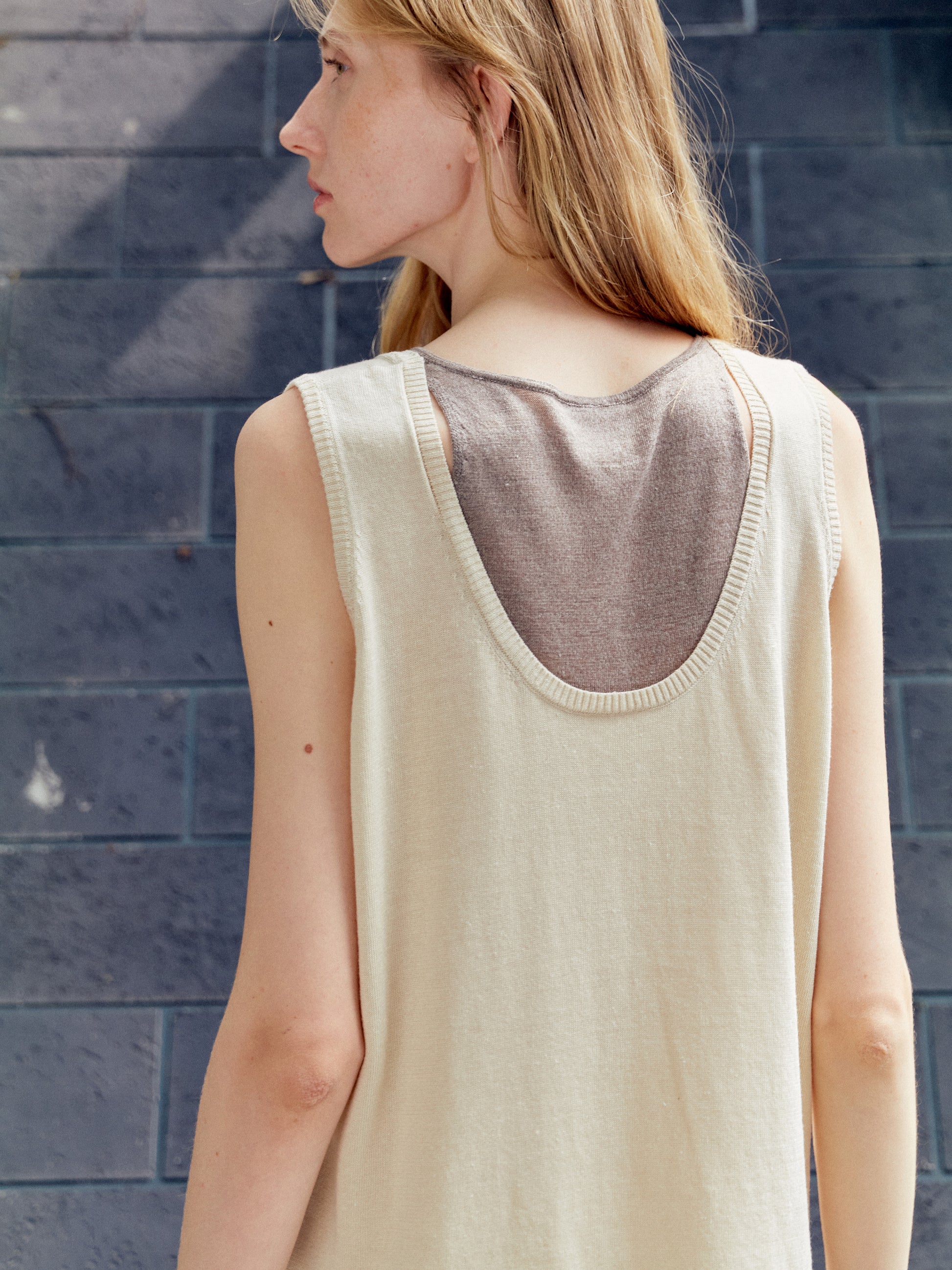 Linen, triacetate and Tencel blend for a soft, airy hand.