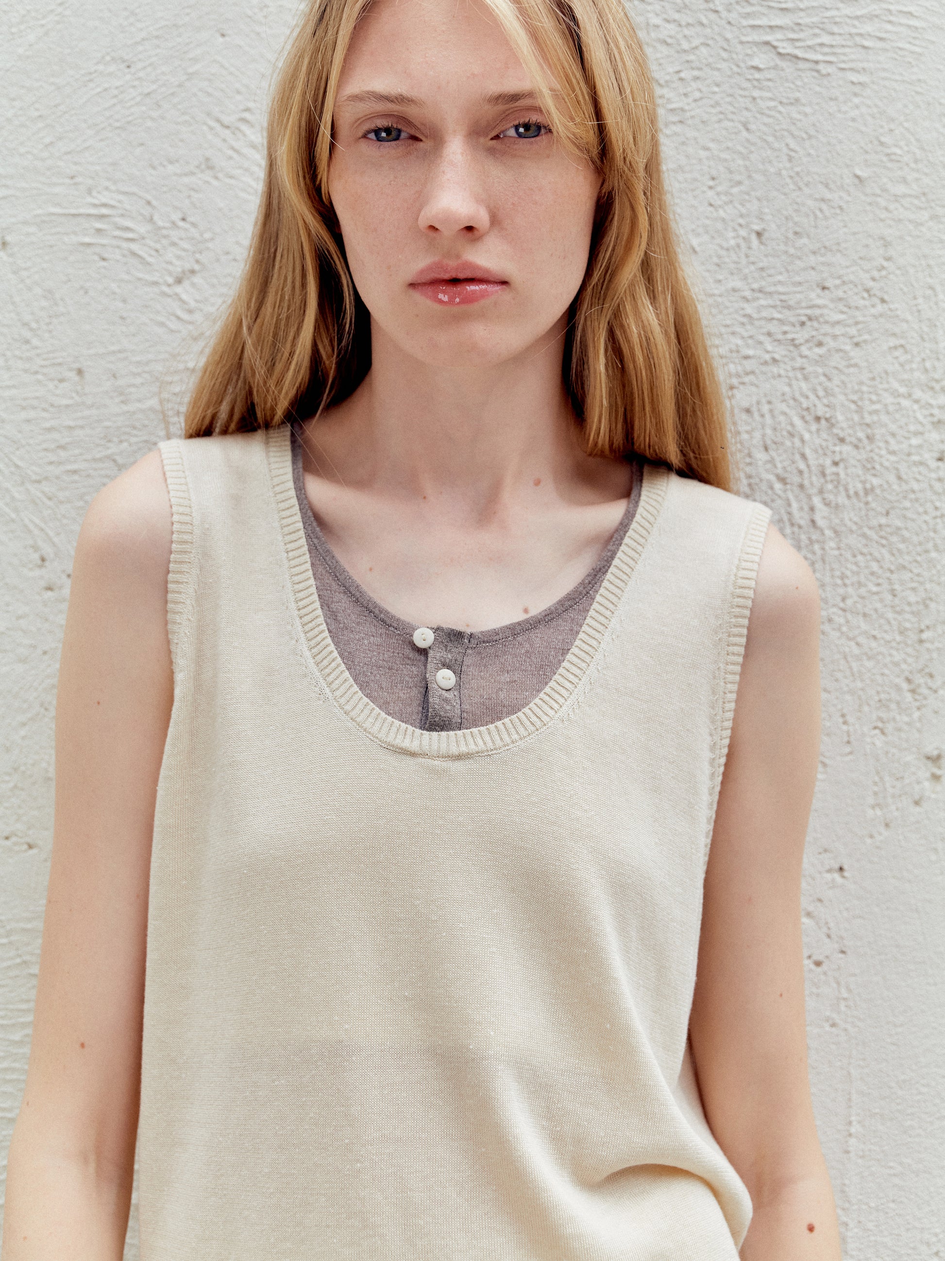COSYCOZY Acetate-Linen Color-Block Vest