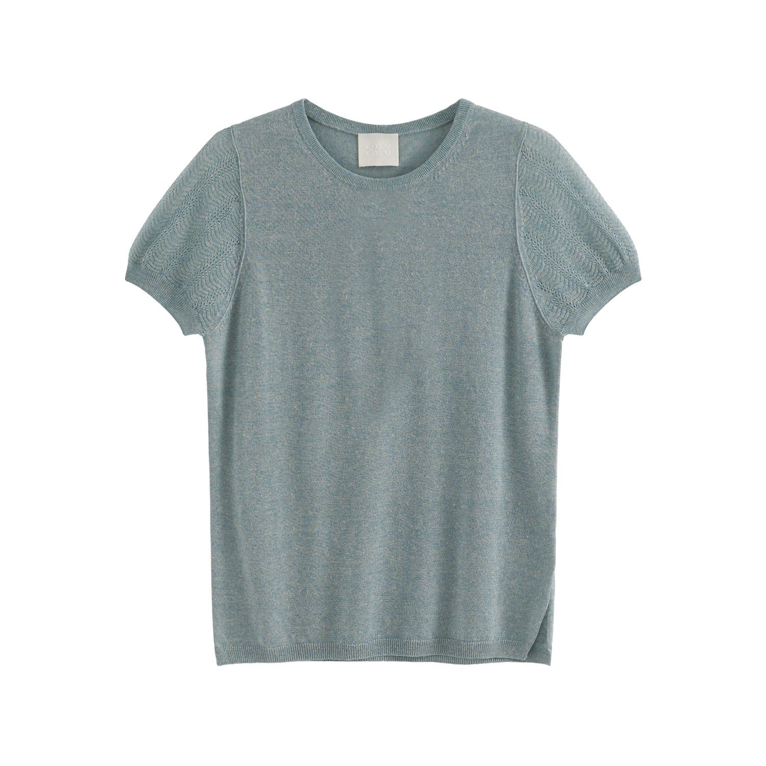 COSYCOZY Acetate Linen Short-sleeve Patch Top