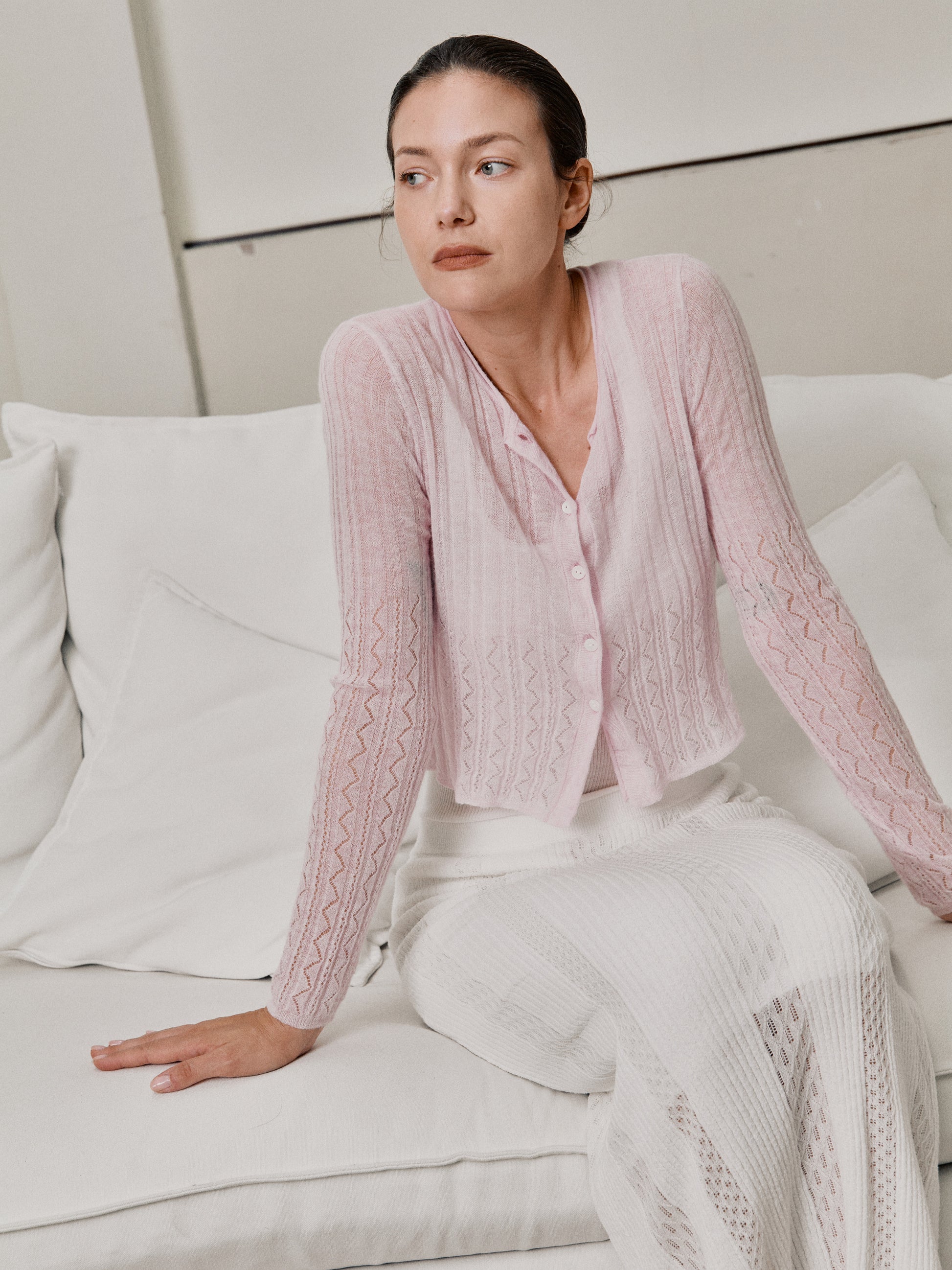 Eyelet lace meets rib knit for a sheer, airy finish.