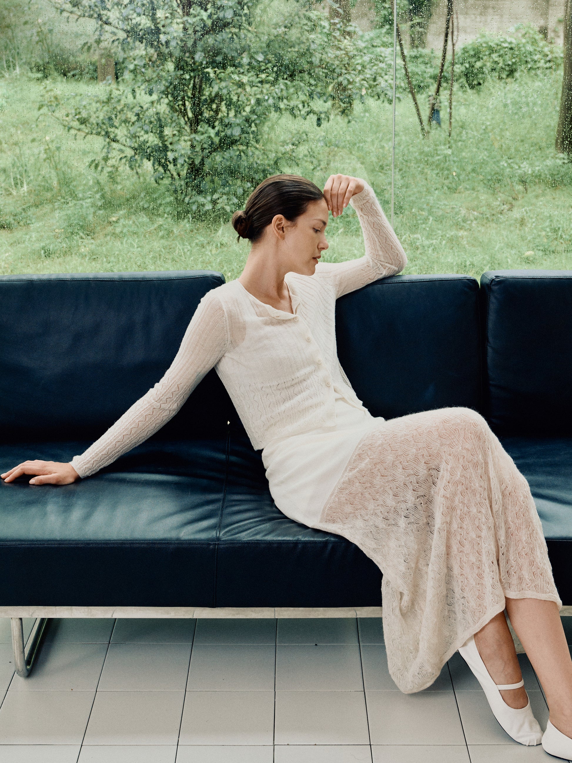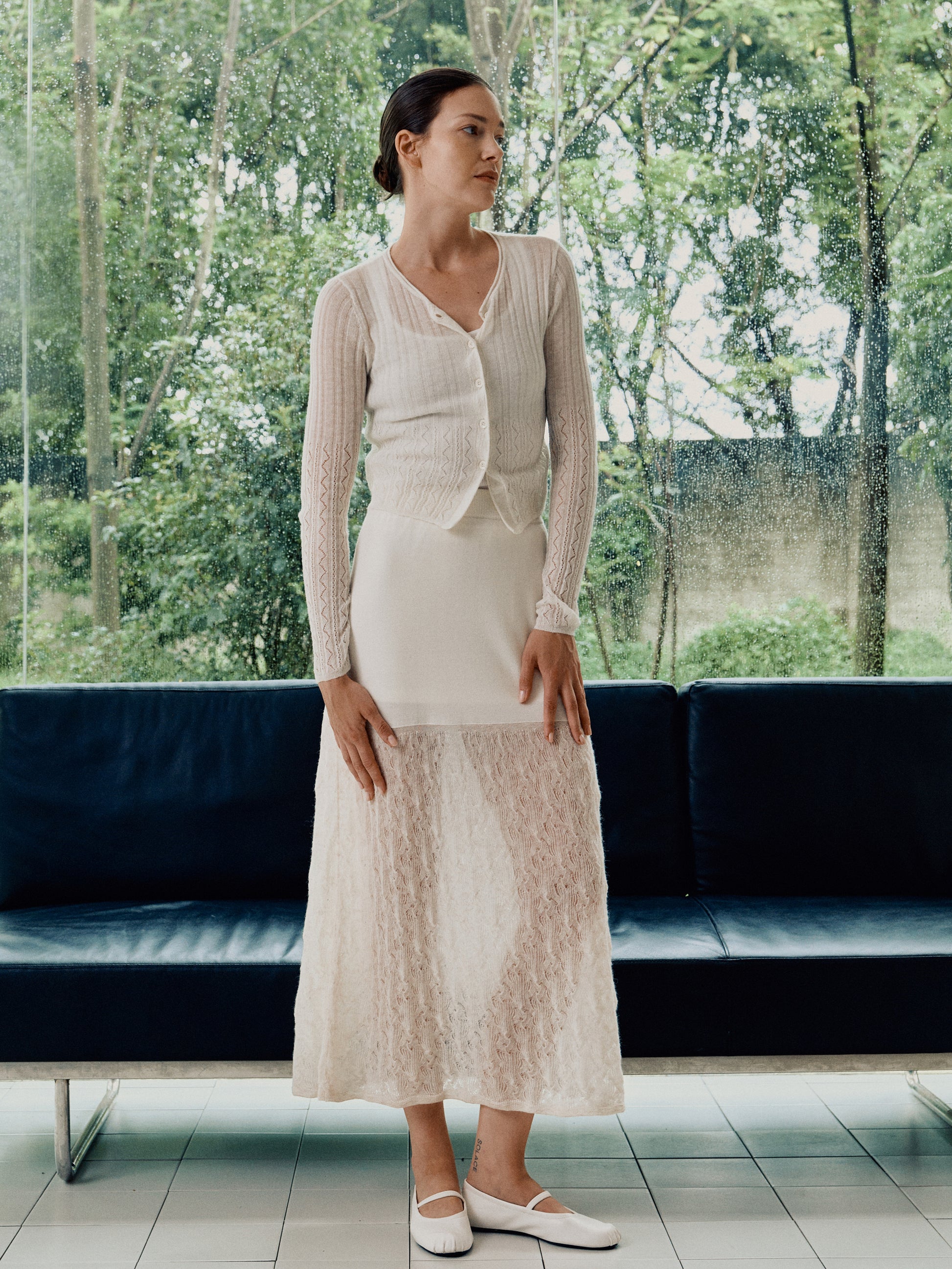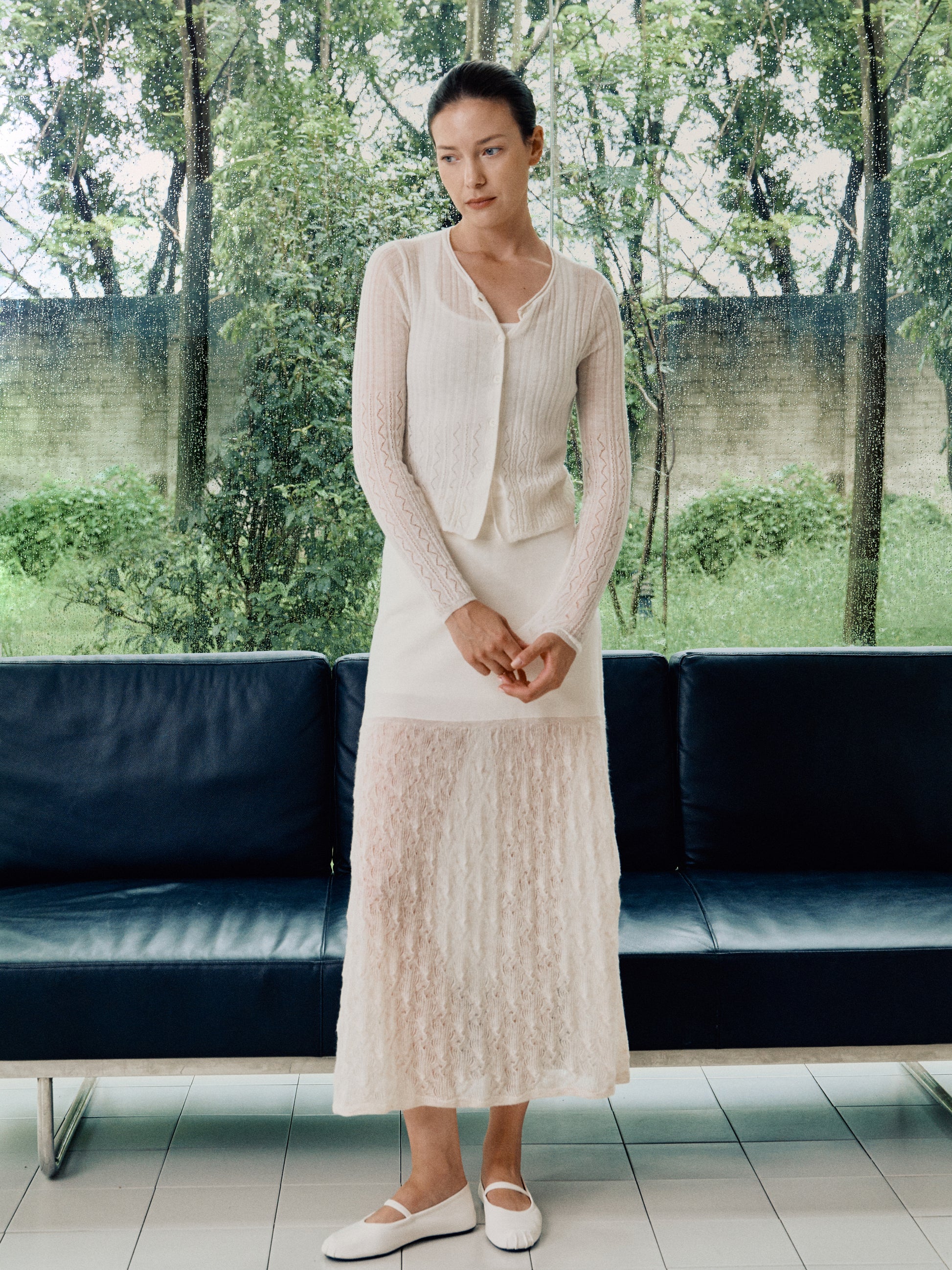 COSYCOZY Color-Blocked Openwork Jacquard Skirt