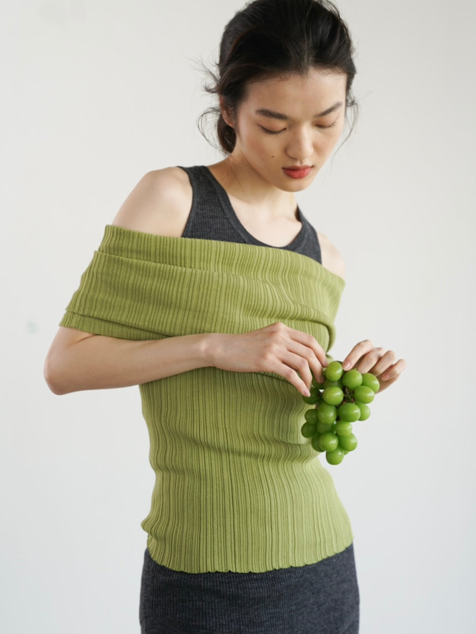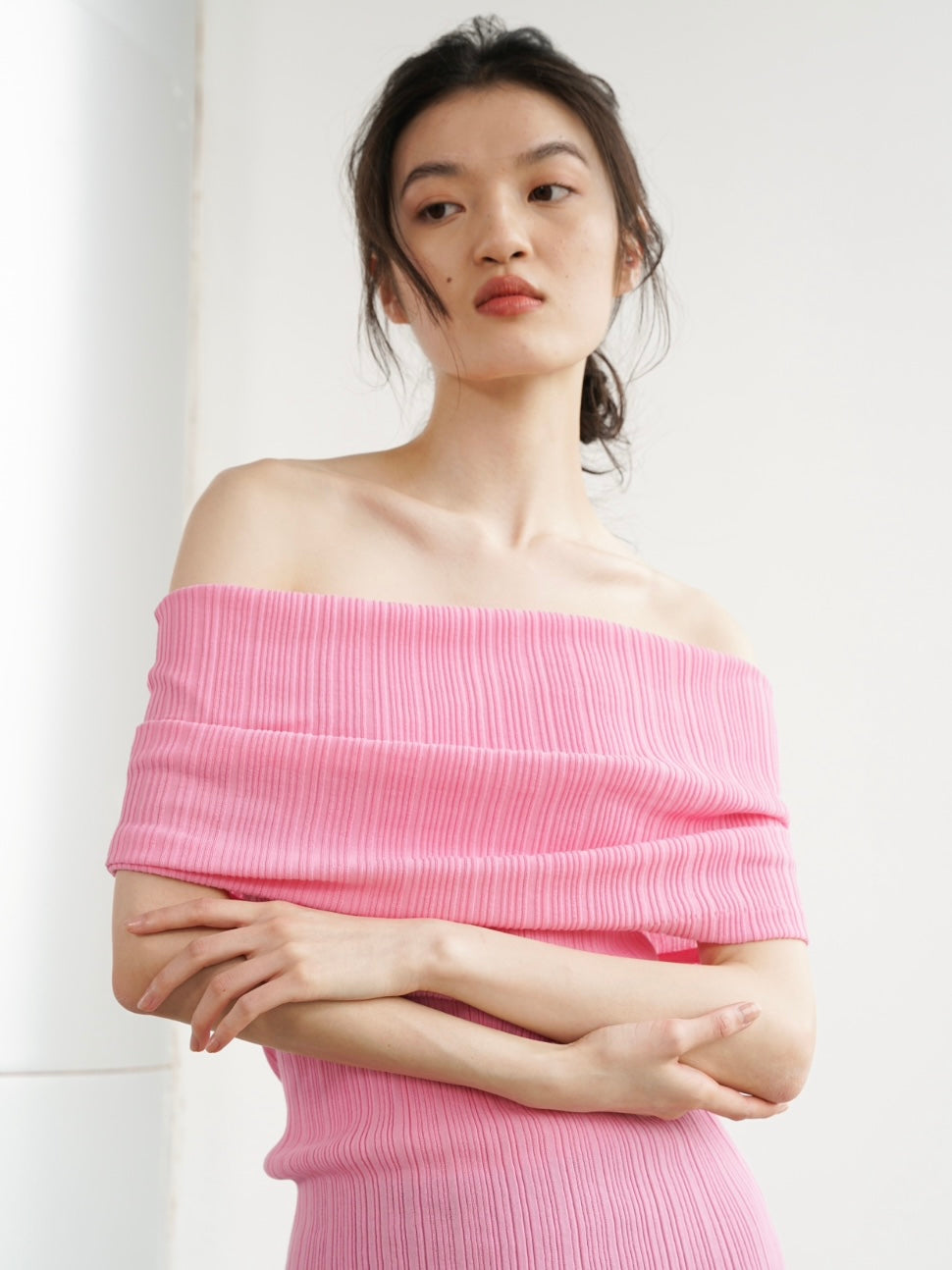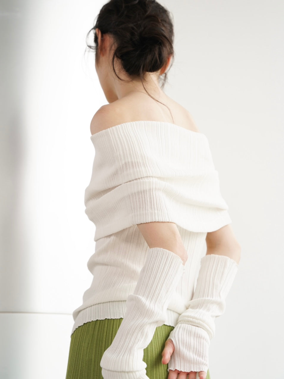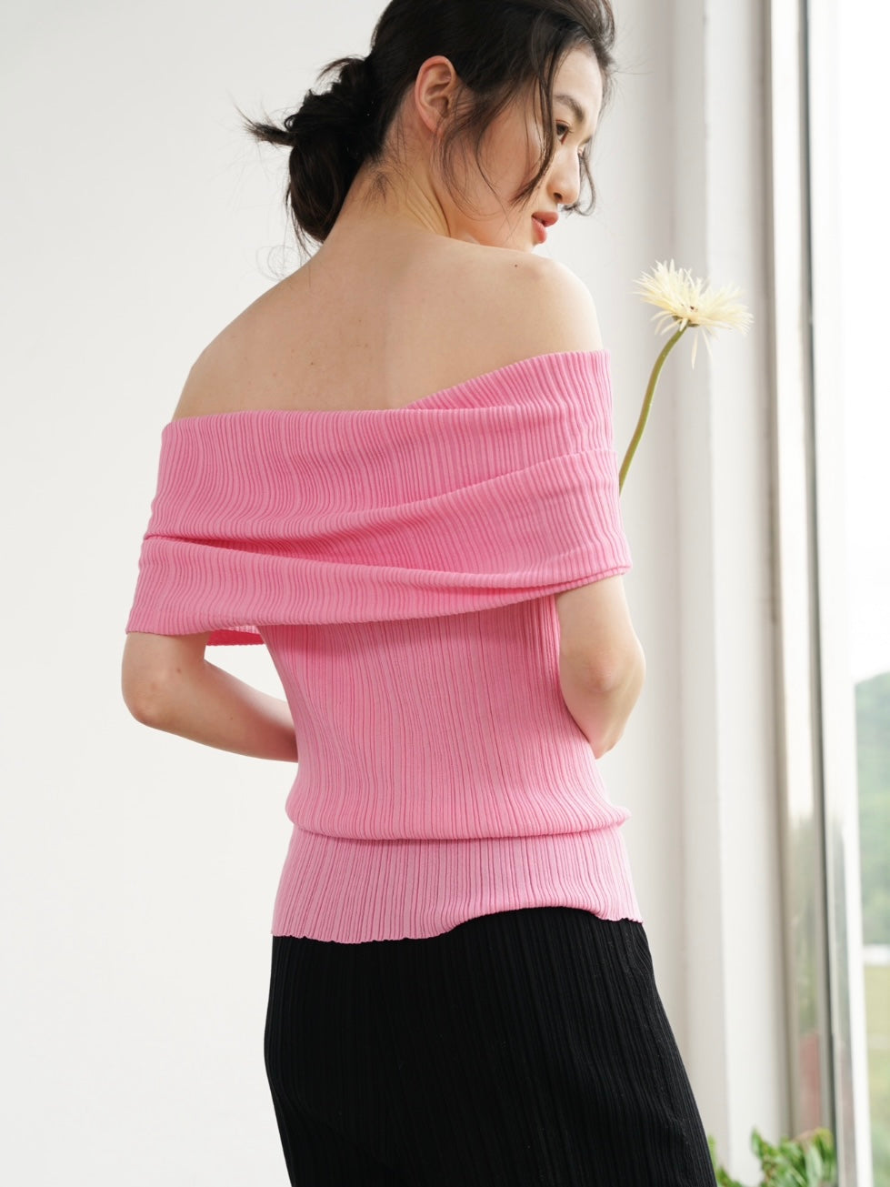 COSYCOZY Knit Pleated Over-shoulder Top