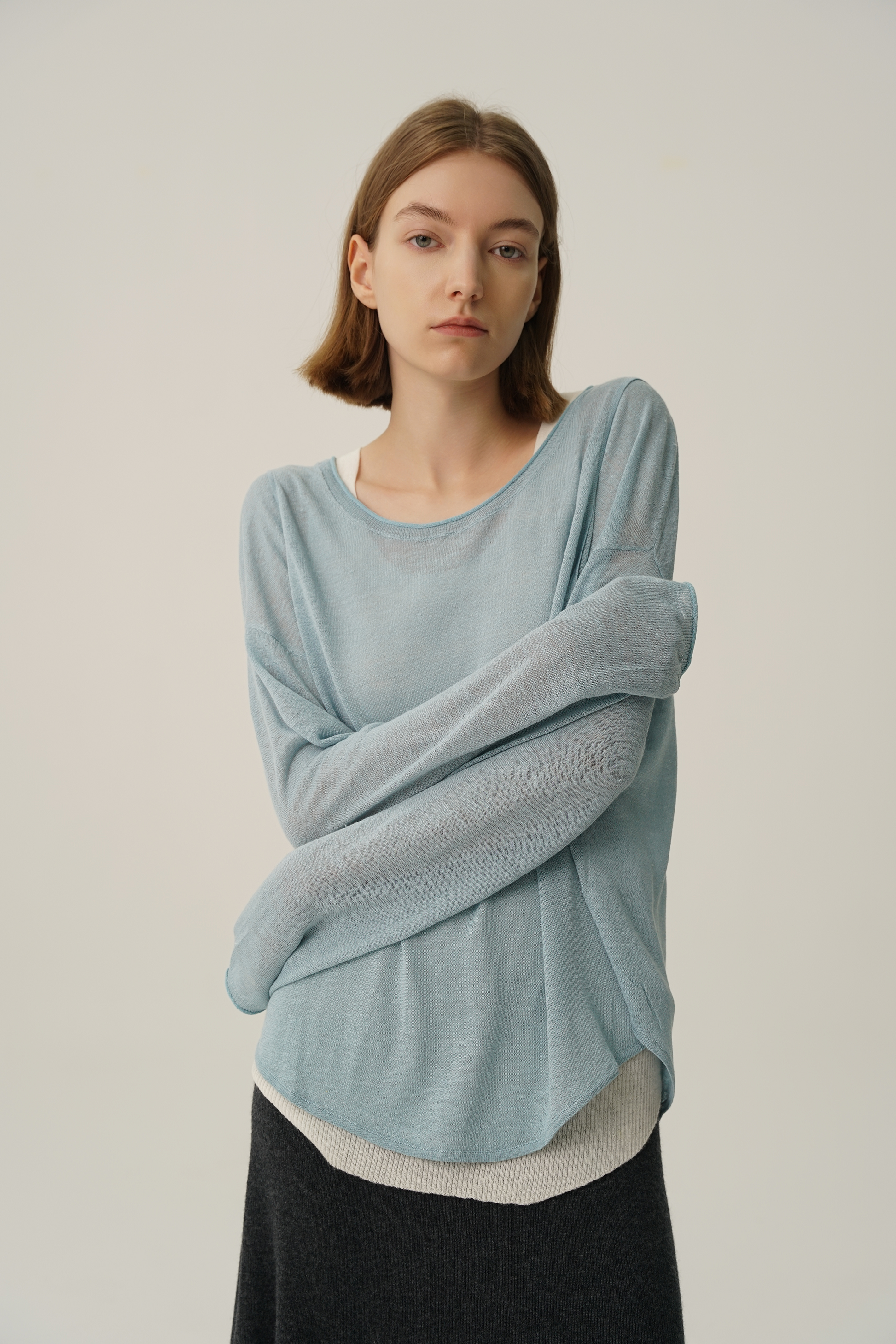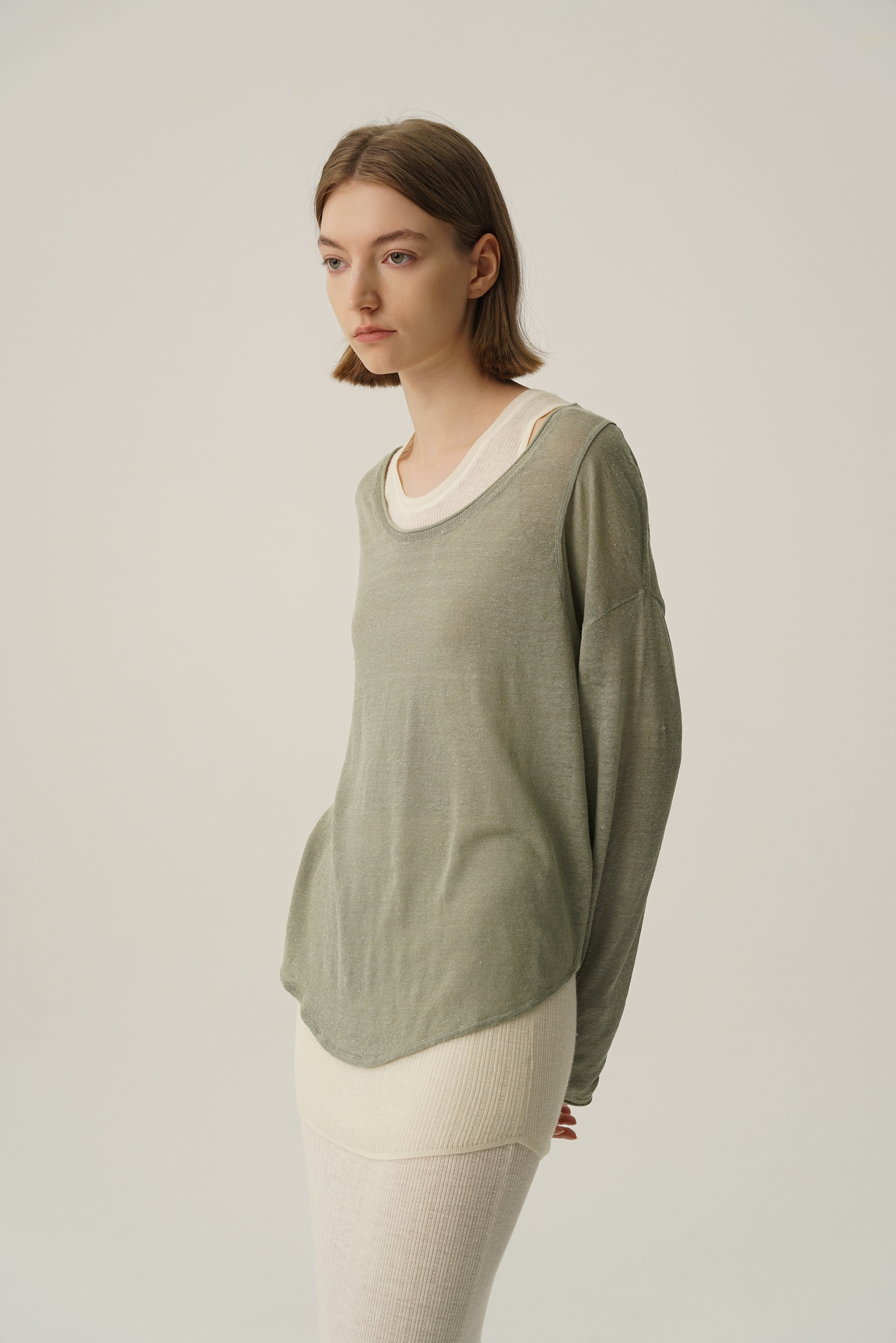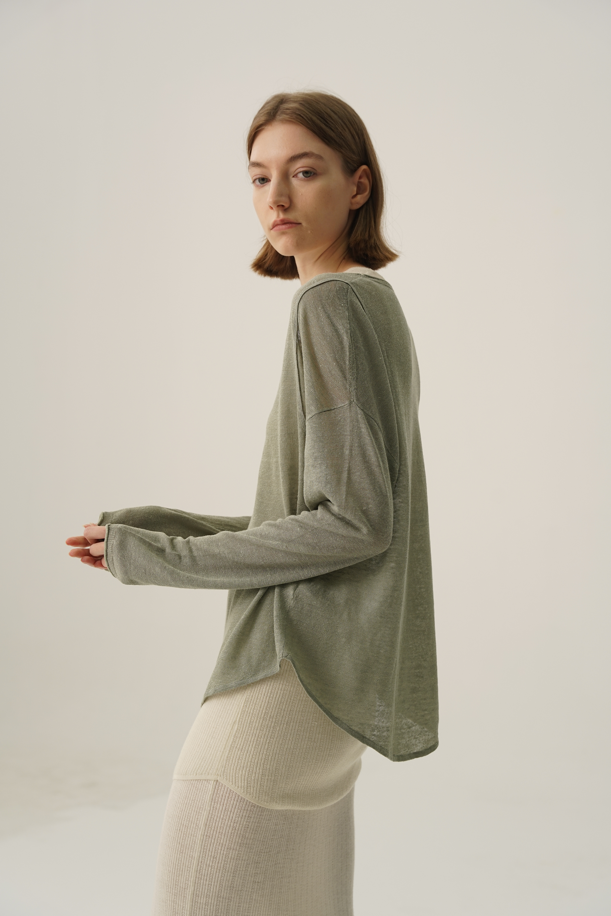 COSYCOZY Linen Long Sleeved Rolled Edge T-shirt