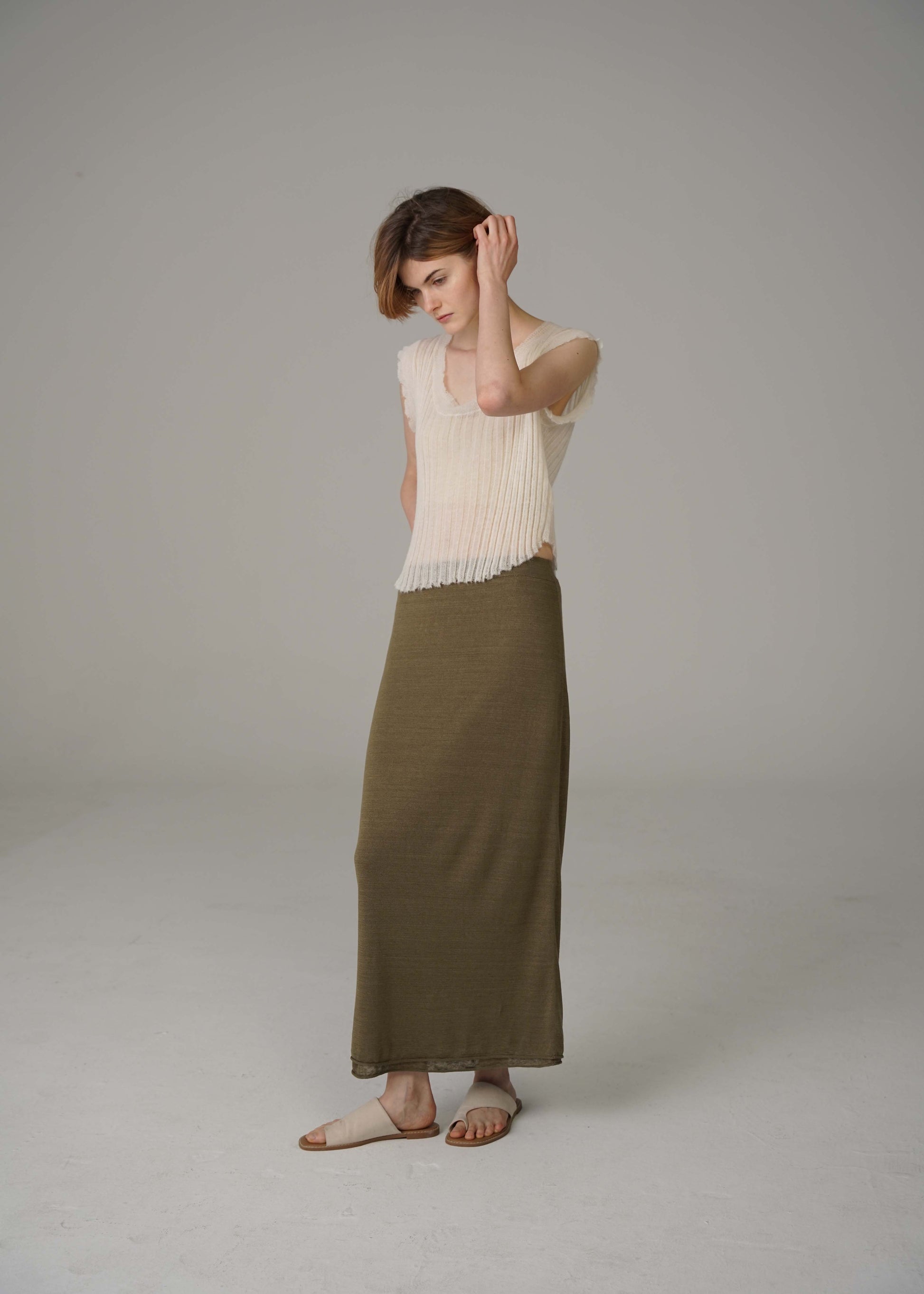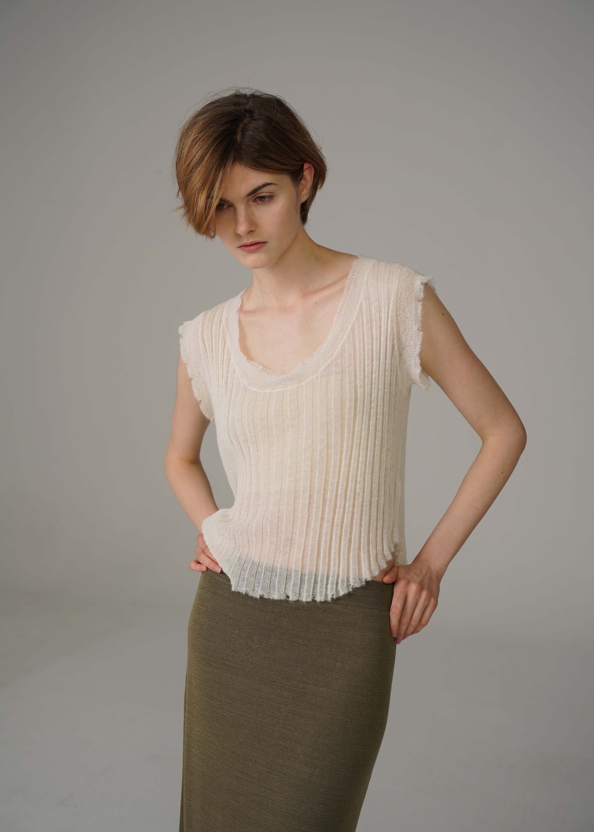 When worn, it slightly penetrates the skin, bringing just the right amount of light penetration. The upper body has no touch, as if it is enveloped by clouds.