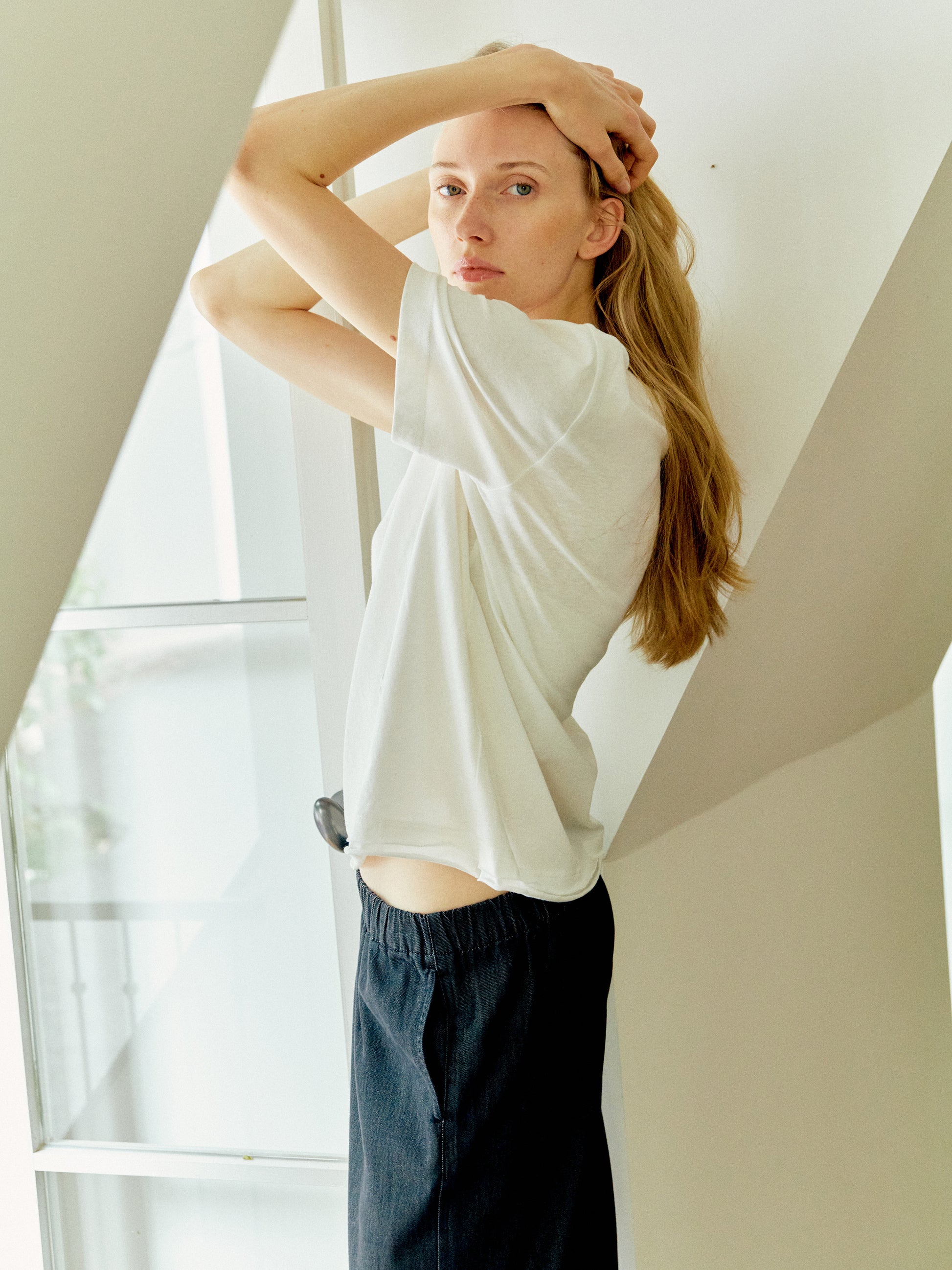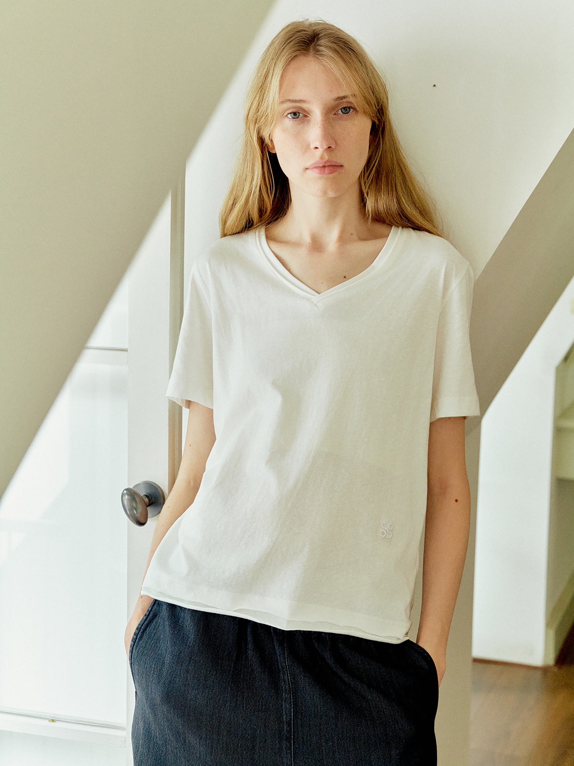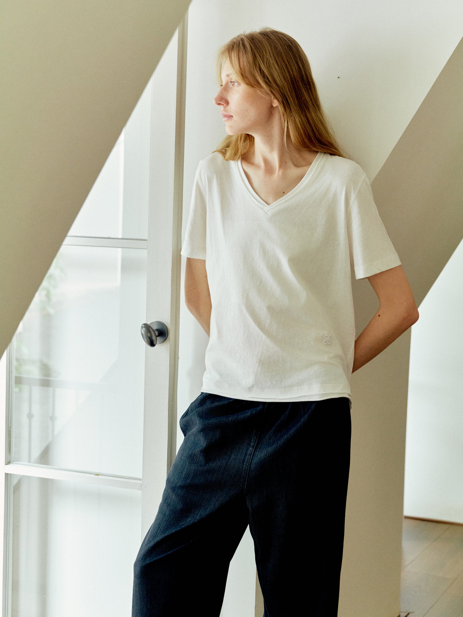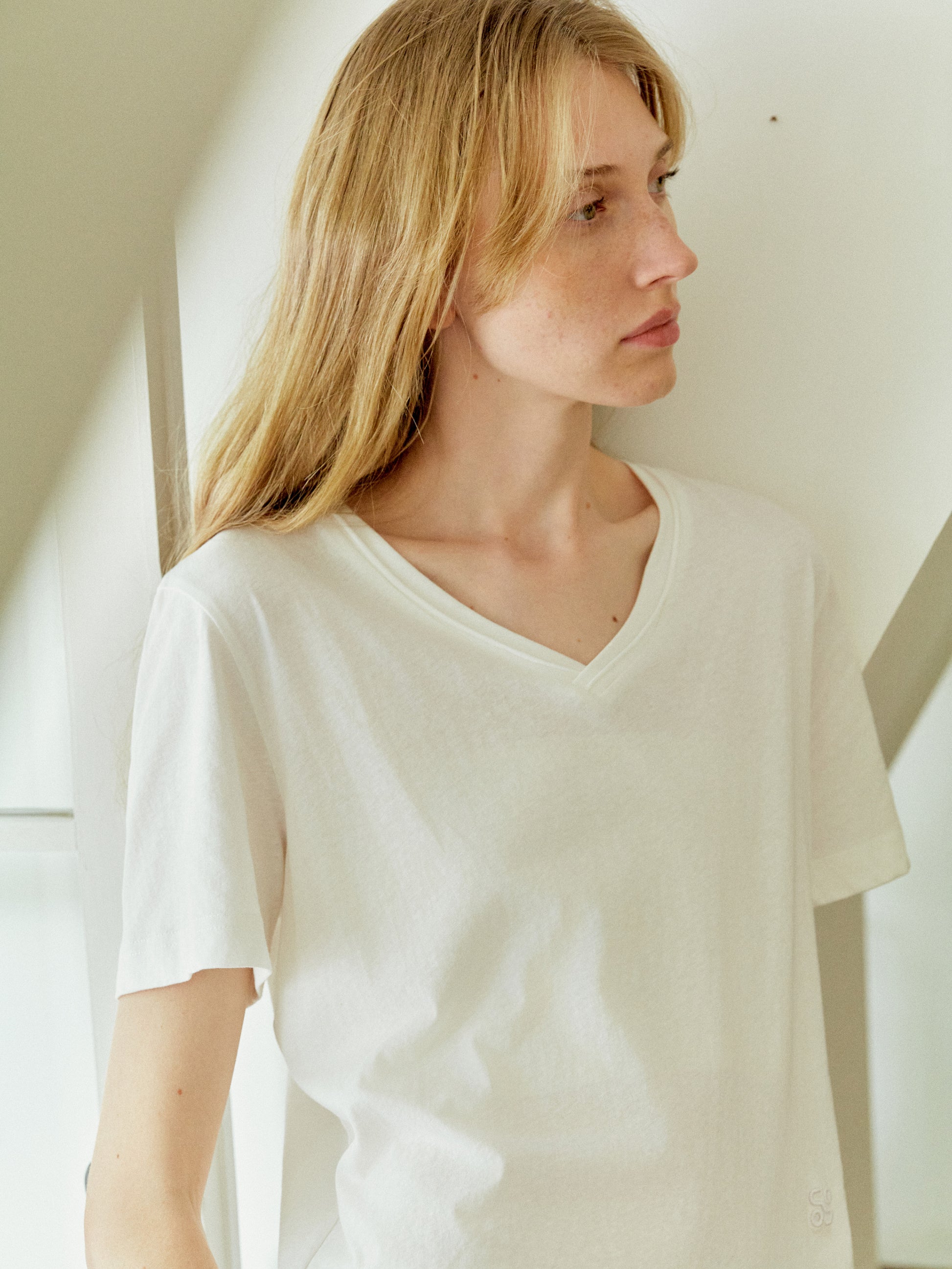 COSYCOZY Dew-Rettted Linen V-Neck T-Shirt